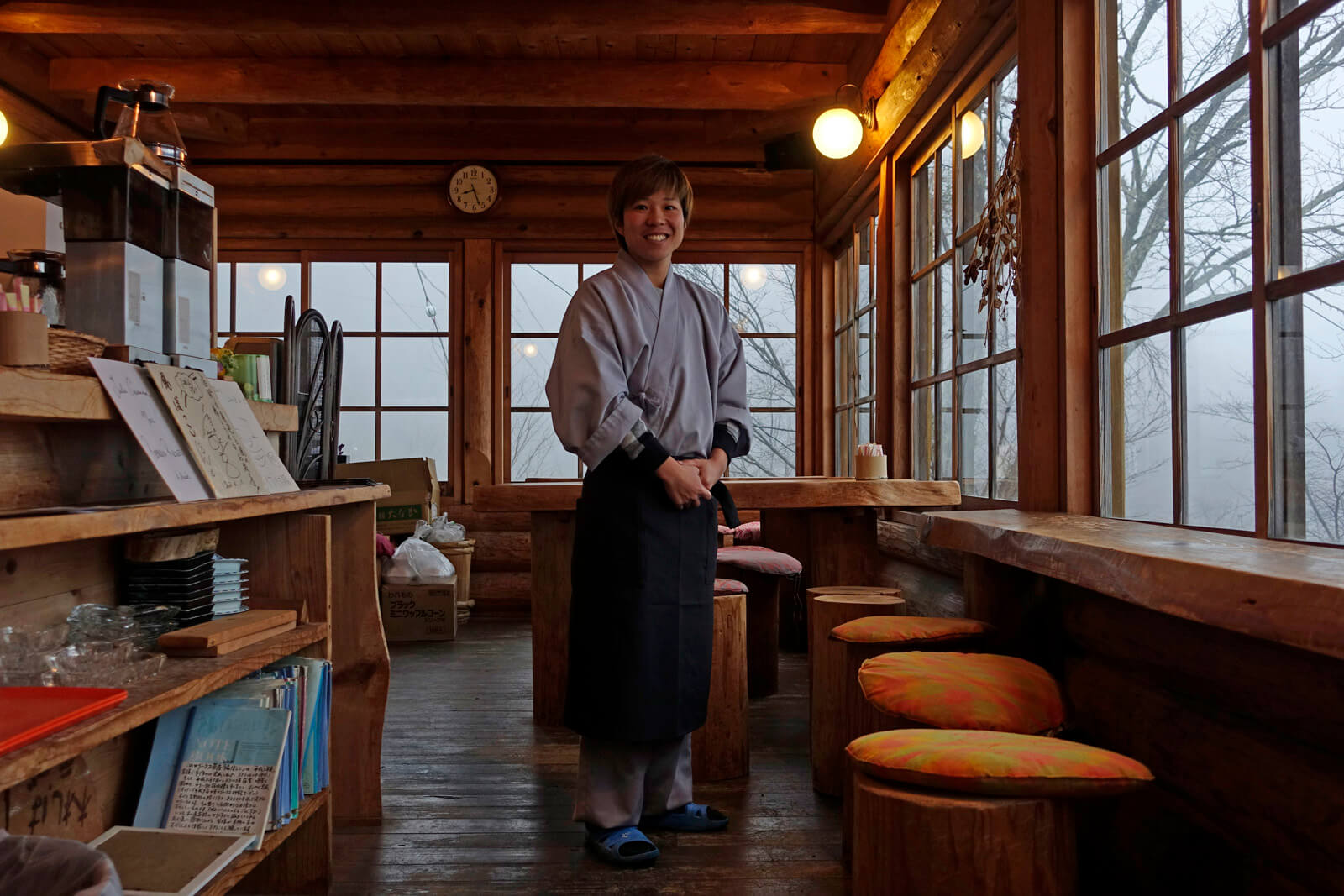 Our visit to Mount Yoshino has left us with fond memories of the people we met. Their faces are imprinted on our minds. First Mrs Kato and her daughter, with all their gentle attentions, their smiles like offerings, their utter kindness, to put it simply. The Katos operate a lovely, unpretentious ryokan, the first one you happen upon in the lower part of town. It’s called Ryokan Kato, which comes as no great surprise, a place that would make you fall in love with Japan if you hadn’t already. No frills, of course. The ample armchairs in the entrance, for example, owe their patina simply to wear and tear over time rather than some vintage look gleaned from a magazine. But what a wonderful feeling of home away from home! The same is true of the rooms, perfect for what they are, no more, no less. Then there was the young member of the staff—still in high school, she said—who came to serve our dinner, with her youthful diffidence and at the same time an unforgettable air of assurance. I’m pretty sure we were never so poised and adept at her age. And then there was the chance encounter we had with a hunter, a few hours earlier, accompanied by his two dogs. Imagine our surprise when he told us he had been an extra on the sets for some of Naomi Kawase’s films. But yes, of course, this is Yoshino-cho, in Nara prefecture, and we were probably not far at all from the narrow streets of Shara and the mountainous landscapes of her first film, Moe no Suzaku. There were still more experiences like these, even after we boarded the return train on the Kintetsu line. We’ll certainly never forget sparking up a conversation, somewhere between Yoshino and Kyoto, with Mr Sato, a former policeman, now the head priest of Yoshimizu-jinja, the famous Shinto shrine on Mount Yoshino, who shared with us his unusual life story and the huge impact the Kobe earthquake in 1995 had on it.