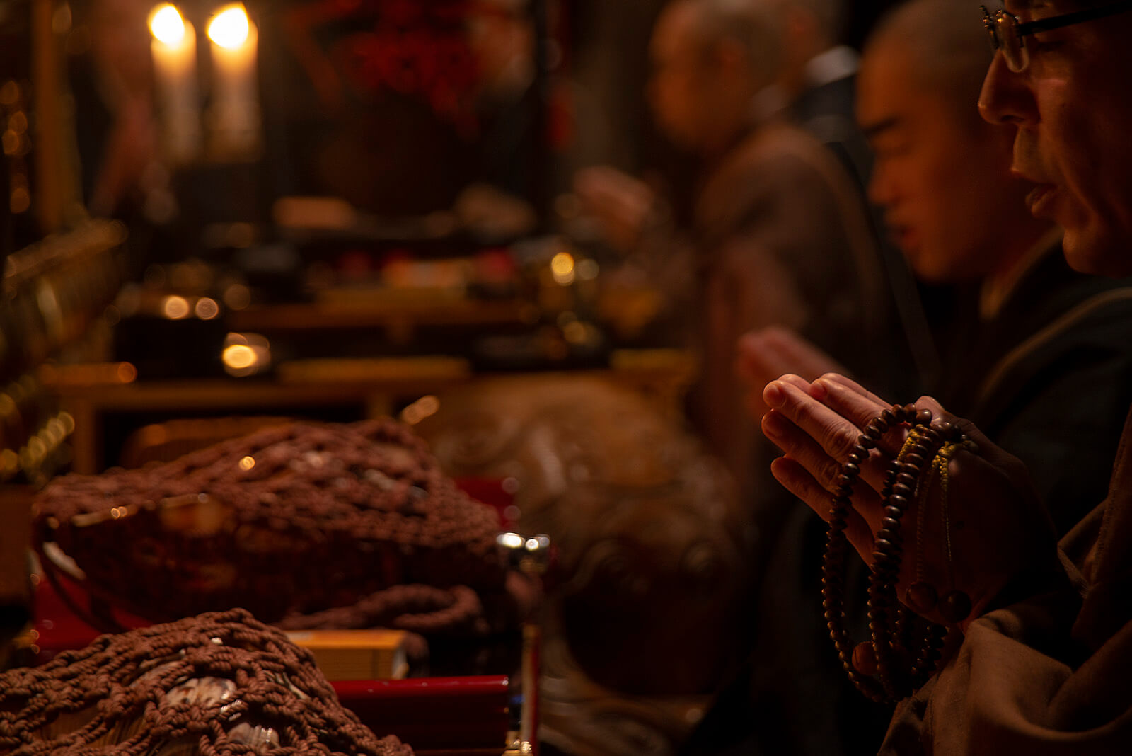 Named as part of a World Heritage Site by UNESCO entitled ‘Sacred Sites and Pilgrimage Routes in the Kii Mountain Range’, Yoshino is also an important religious destination, home to many temples and shrines, all at least hundreds of years old, and in some cases over a thousand. Kimpusen-ji is certainly the best known, celebrated not only for its outsize dimensions, but also its pillars covered in gold leaf. Legend has it that it was Hideyoshi Toyotomi, one of the leading figures in Japanese history, who commissioned this gold-leaf decoration, to resonate with the beauty of the cherry blossoms. The temple was established in the 8th century by En no Gyoja, an ascetic and mystic known as the founder of the Shugendo sect, literally ‘the path of training and testing’, more a relationship with the world, accompanied by a set of practices observed by the famous Japanese mountain hermits known as the Yamabushi, rather than a religion in the fullest sense of the word. Whereas Mount Koya embodies the spirit of Shingon, the branch of Buddhism founded by Kukai, Mount Yoshino is more ecumenical, at the crossroads of Shintoism, Buddhism and even more ancient mountain mystic cults. From the path below, Kimpusen-ji surges into view, stunning for its grand scale and the solemnity it conveys. In the wee hours, the priests begin the morning service known as tsutome, yet another fascinating spectacle. But already our train awaits to take us to the final destination on our journey, Mount Hiei.