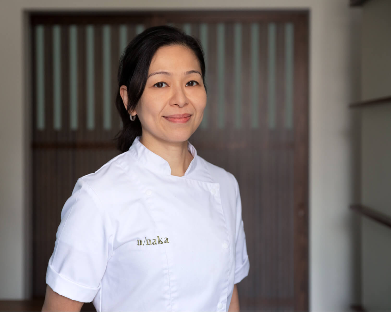 A California native, Niki Nakayama trained alongside sushi chefs in the United States before carrying out an apprenticeship in 1997 with Masa Sato, chef at Shirakawa-Ya ryokan in Niigata prefecture in Japan. On her return to Los Angeles, she first opened a sushi bar, Azami Sushi Cafe, in 2000, before tiring of her clients’ demand for unnatural fusion cuisine. Kaiseki was calling to her, and she founded n/naka in 2011.