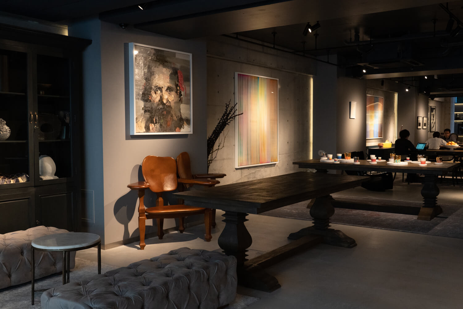 The hotel was designed in the image of an art collector’s residence. Each of its 25 rooms contains works by contemporary Japanese artists such as Tomoo Gokita and Haruna Kawai, as well as pieces by foreign artists, all of which have been acquired from fairs and galleries all over the world. Canvases are also displayed in the lobby, which evokes a luxurious reception room, though without being ostentatious. ‘The hotel has just opened, but I’d eventually like to change the works found on the first floor (in Japan, “first floor” designates what would be referred to as the “ground floor” in countries like the UK) regularly, four times a year, with each season’, states Akinori Kanao.