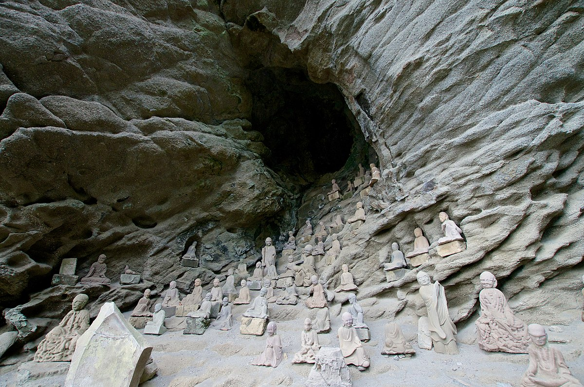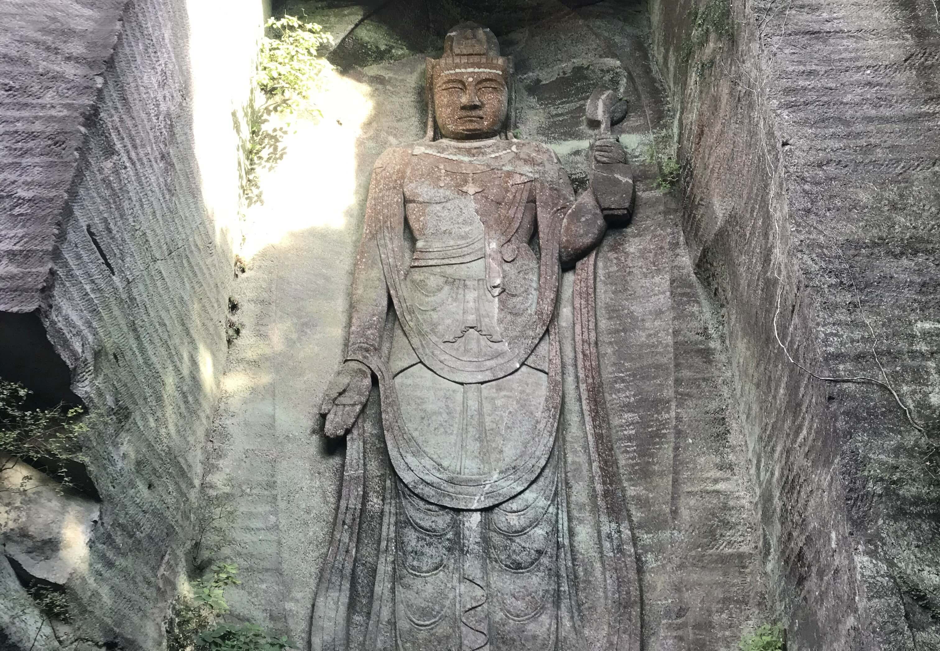 The hill is a real open-air religious museum and a location of choice for admirers of Buddhist sculpture from all eras. In addition to the multitude of small damaged sculptures, known as Rakan (disciples of Buddha), dating back to around 1744, visitors can admire a statue of the goddess Kannon, standing 30 metres high and carved into the rock, Hyakashu Kannon, created in 1966.