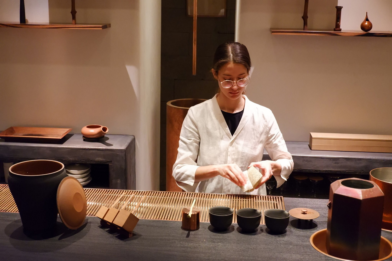This ‘art of being’ is reflected in many respects in the various spaces which make up OGATA, from the boutique dedicated to the art of tea to the restaurant, the bar, the tea salon and the decorative objects area. These are soon to be joined by a space showcasing incense, and an art gallery. OGATA is transcribing the very essence of traditional Japanese culture but in a contemporary manner, using traditional craftsmanship while also modernising it, as shown in the unusual tea salon situated in the basement, which holds just 30 people. The tea tasting sessions still take place in accordance with standard practice rules. The steaming beverage is served delicately in a bowl, accompanied by Japanese pastries.