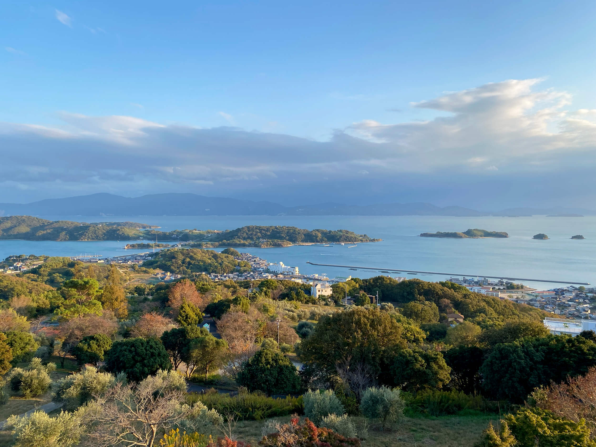 Stunning view of the Seto Inland Sea from the Ushimado Olive Garden in Setouchi.