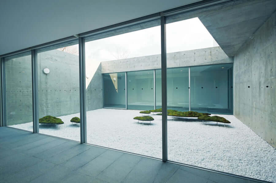 The bare concrete and glass composition is typical of Ando's architecture. Here he also achievesan exquisite harmonising of water and greenery.