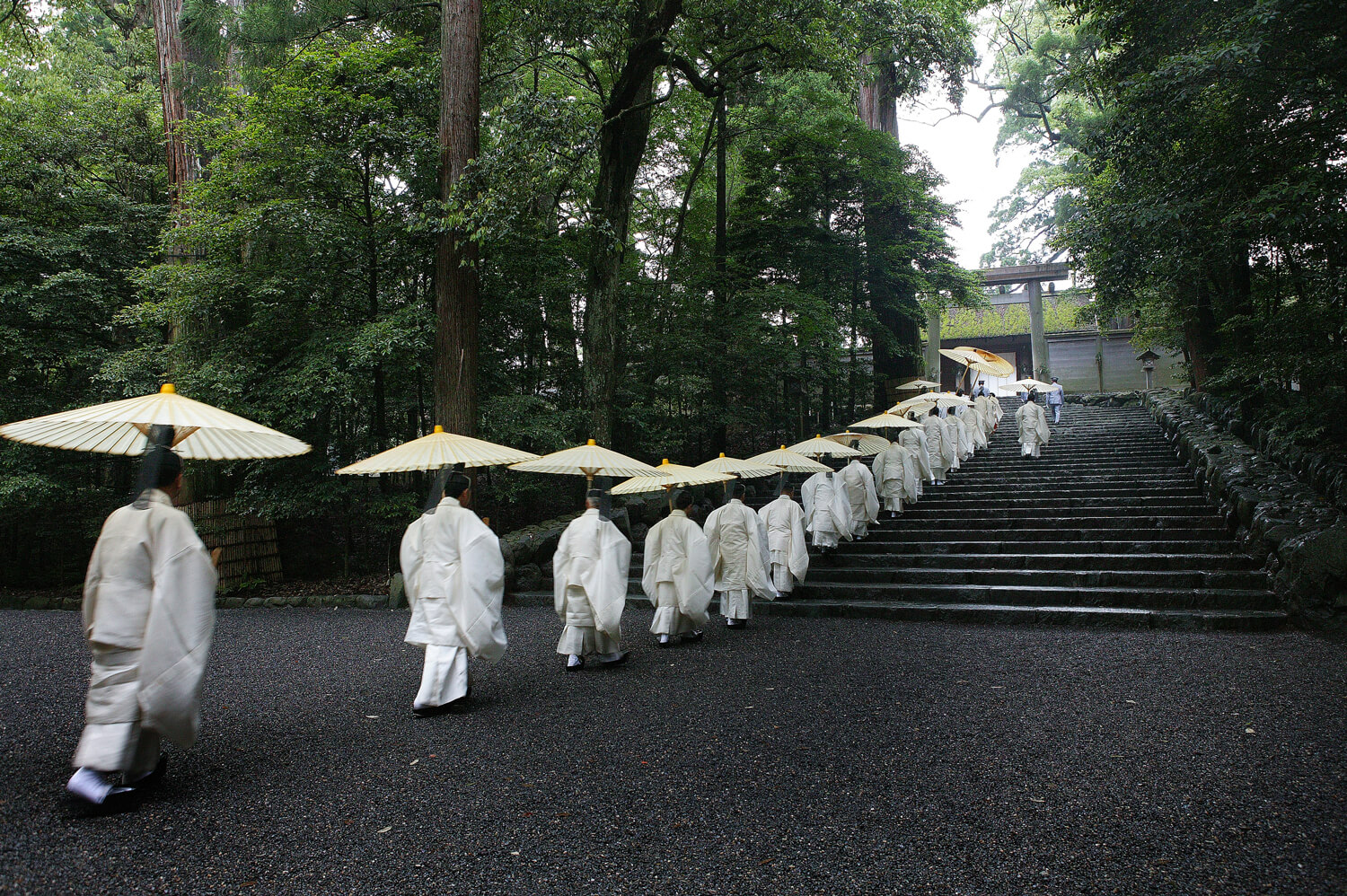 Shinto priests attending a Naiku ritual.