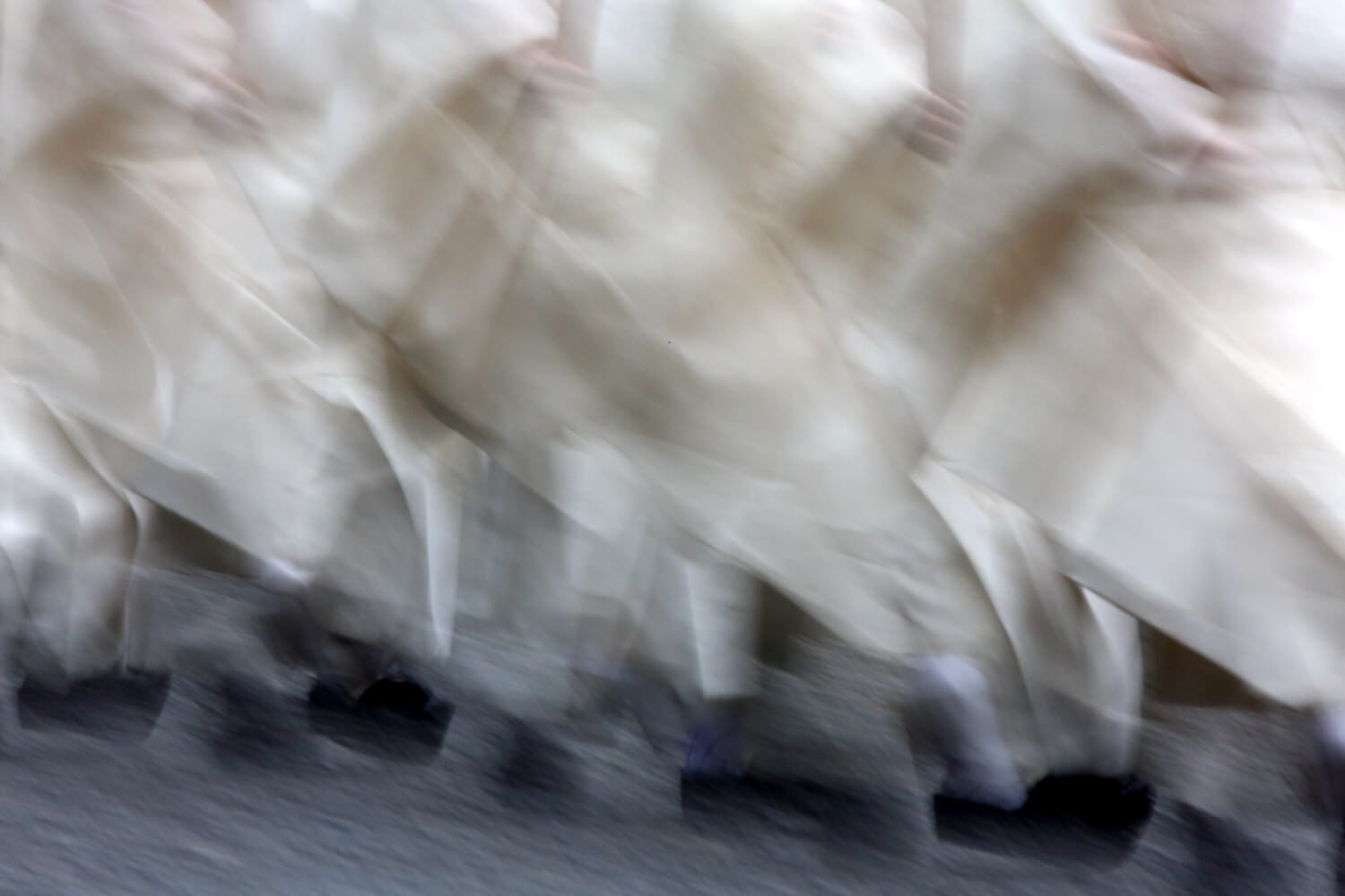 Walking along the gravel path, the priests process towards the home of the deities.