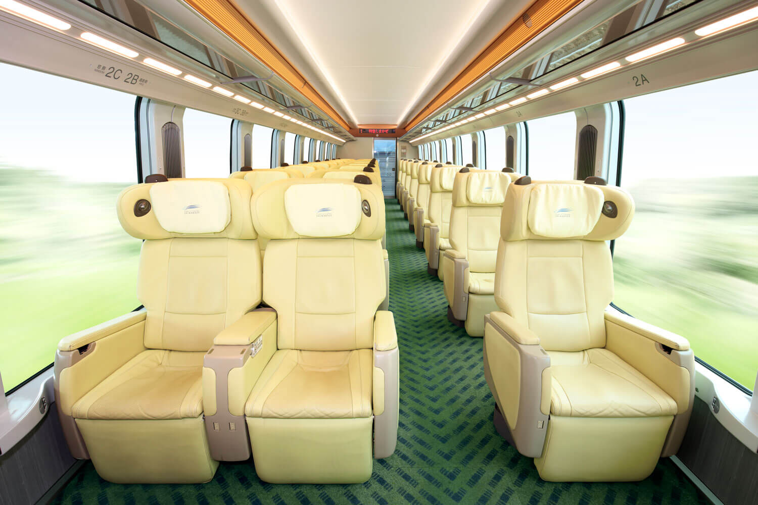 The sharp-looking front design utilises six panes of glass. Both the front and rear cars of the train serve as observation cars, with the floor level intentionally set higher to allow passengers a greater enjoyment of the stunning views.