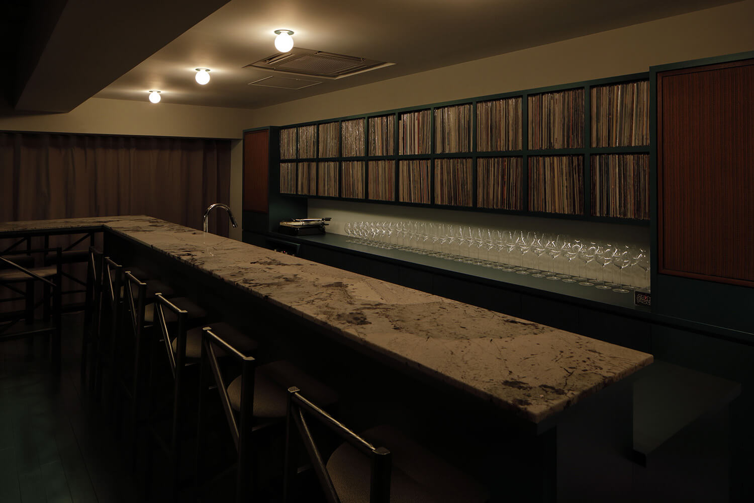 Located in Tokyo's Shibuya district, this eleven-seat bar where clients can enjoy natural wines doubles as a record shop.