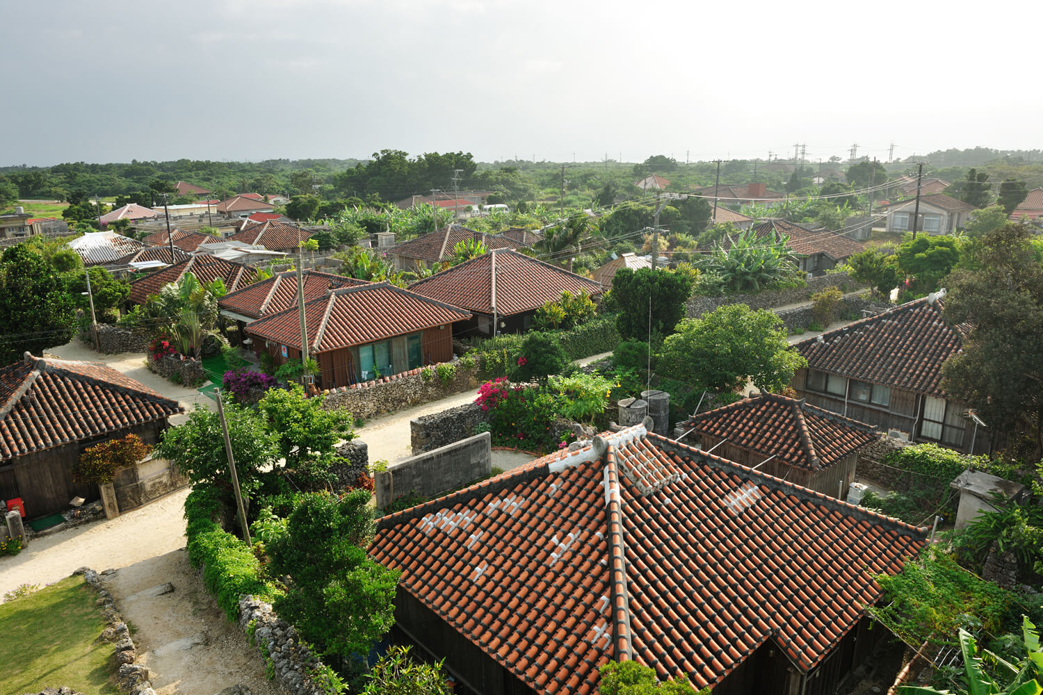 More attentive visitors will also notice little terracotta statues depicting a hybrid animal, somewhere between a dog and a lion, watching out from the rooftops. These are shisa, small creatures inherited from Chinese culture, intended to bring happiness and to protect houses from evil spirits.