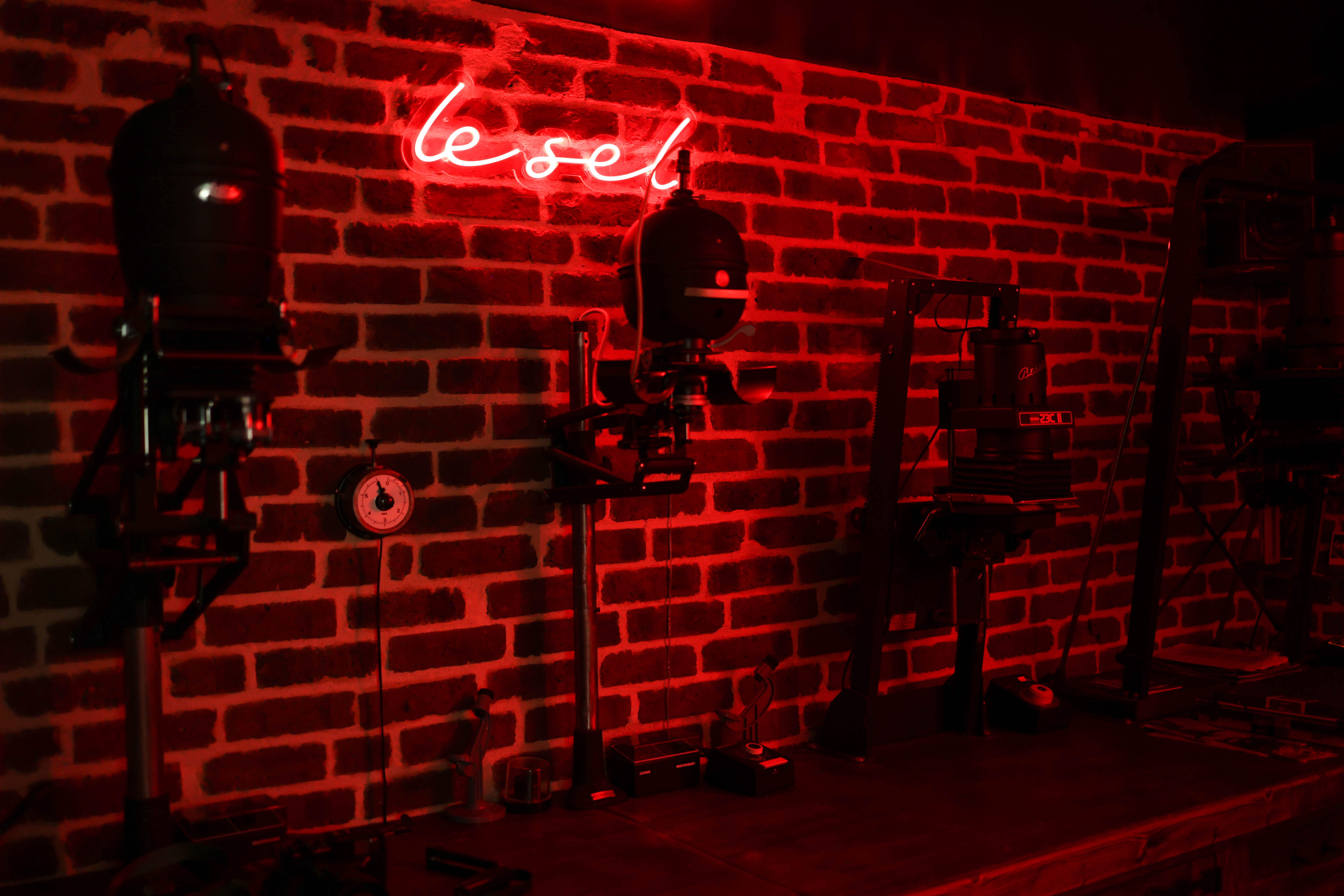 For those interested in film photography beyond the act of shooting, the Le Sel darkroom—tucked away in the basement of the boutique—offers an ideal gateway into the art of printing. Its founder, Thibaut Piel, personally sourced and restored the vintage enlargers that now line the space—rare finds in today’s market. Though more technical to handle, they exude a nostalgic charm, reviving forgotten gestures and sounds. One, for instance, comes with a dial timer mounted on the wall, emitting a soft, rhythmic ticking that sets the tone.