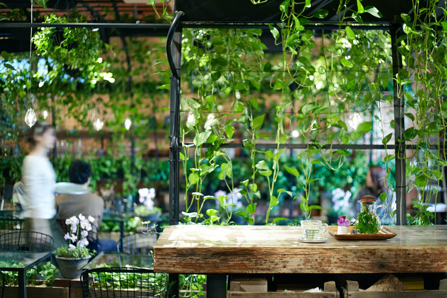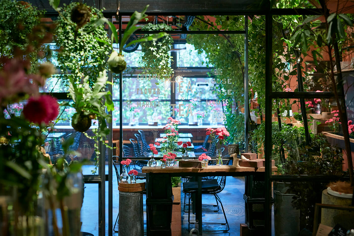 At the back of Aoyama Flower Market in Tokyo, close to Omotesando Avenue, nestled between bouquets and potted plants, lies an almost secret door. It conceals a tea room, decorated with plants and flowers from floor to ceiling.