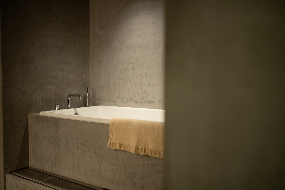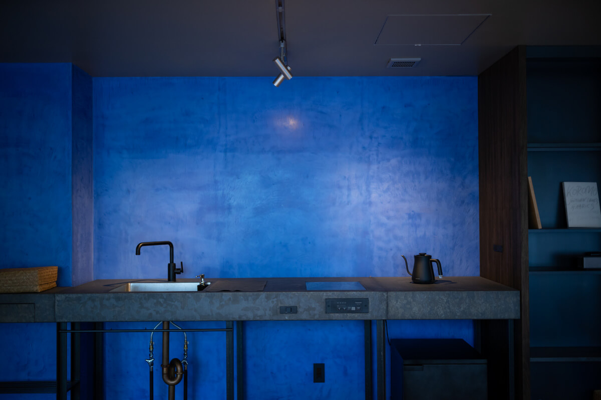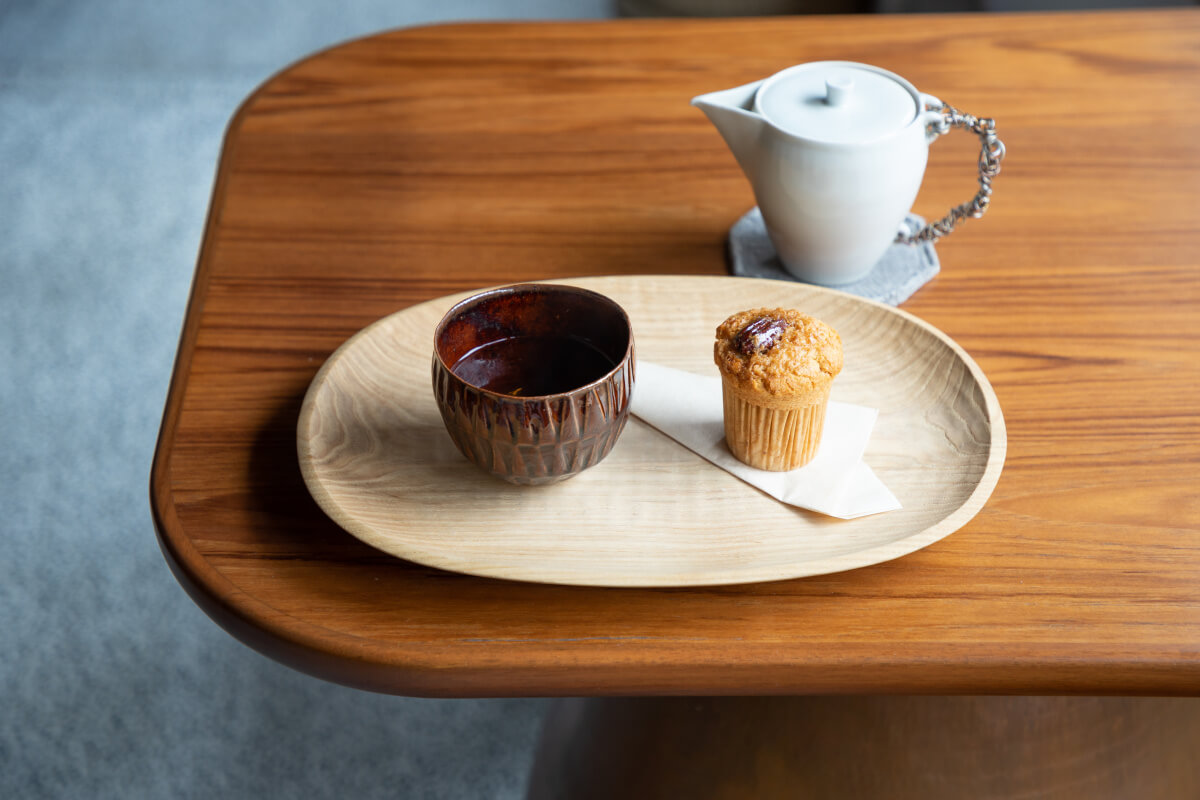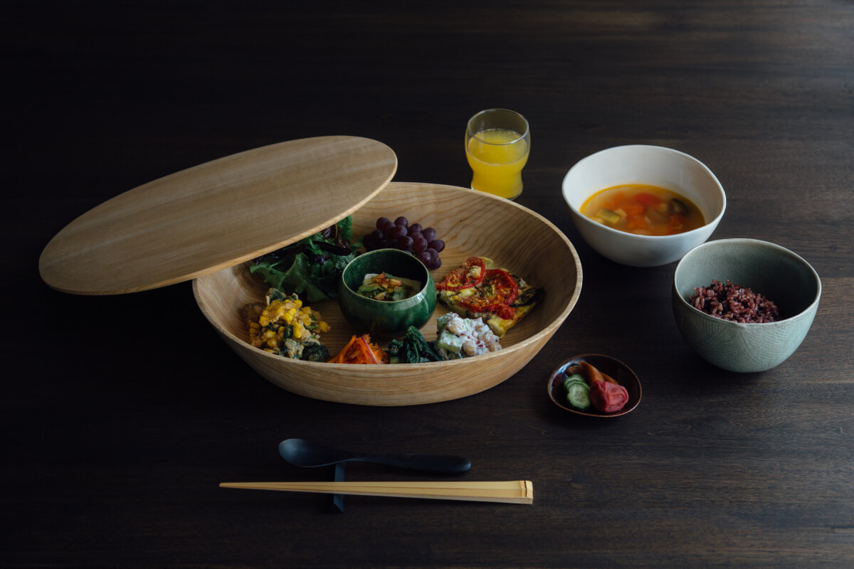 First, the colors of the guest rooms are astonishing. Each room has a chromatic palette—sumi (anthracite gray), blue, red, with nuanced plaster covering the walls, and organized with chic touches such as bedcovers with hand-sewn appliqués from India. Other delights include the morning sunbeams that enter through the large south-facing window, the stone-studded araidashi floor that feels good on bare feet, and loungewear finished with Indian milled cotton khadi. Only comfortable features that appeal gently to the five senses are found here, so your time here passes with a completely relaxed heart. Breakfast is also a real treat. A plate full of organic vegetables, based on the lunches served in Jurgen Lehl’s staff cafeteria, is perfect for starting the day refreshed.
