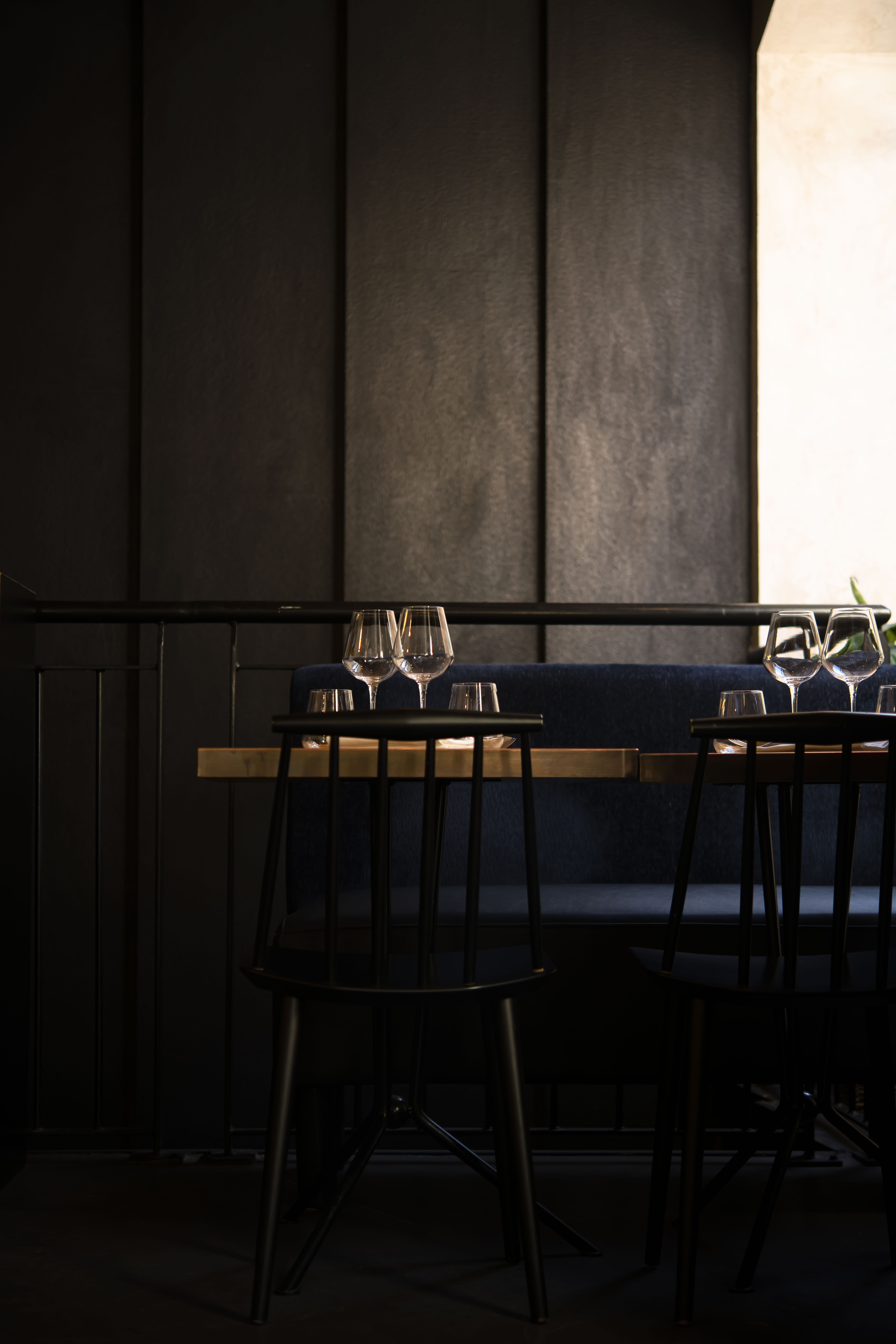 The restaurant is divided into three spaces: a traditional room, another that is more understated with a muted ambiance, and a third in the basement where the tables are positioned alongside the open kitchen and where there is also a cocktail bar. The menu features the best Japanese alcohol, from Japanese plum brandy to whisky and cherry-blossom syrup mixed with gin.