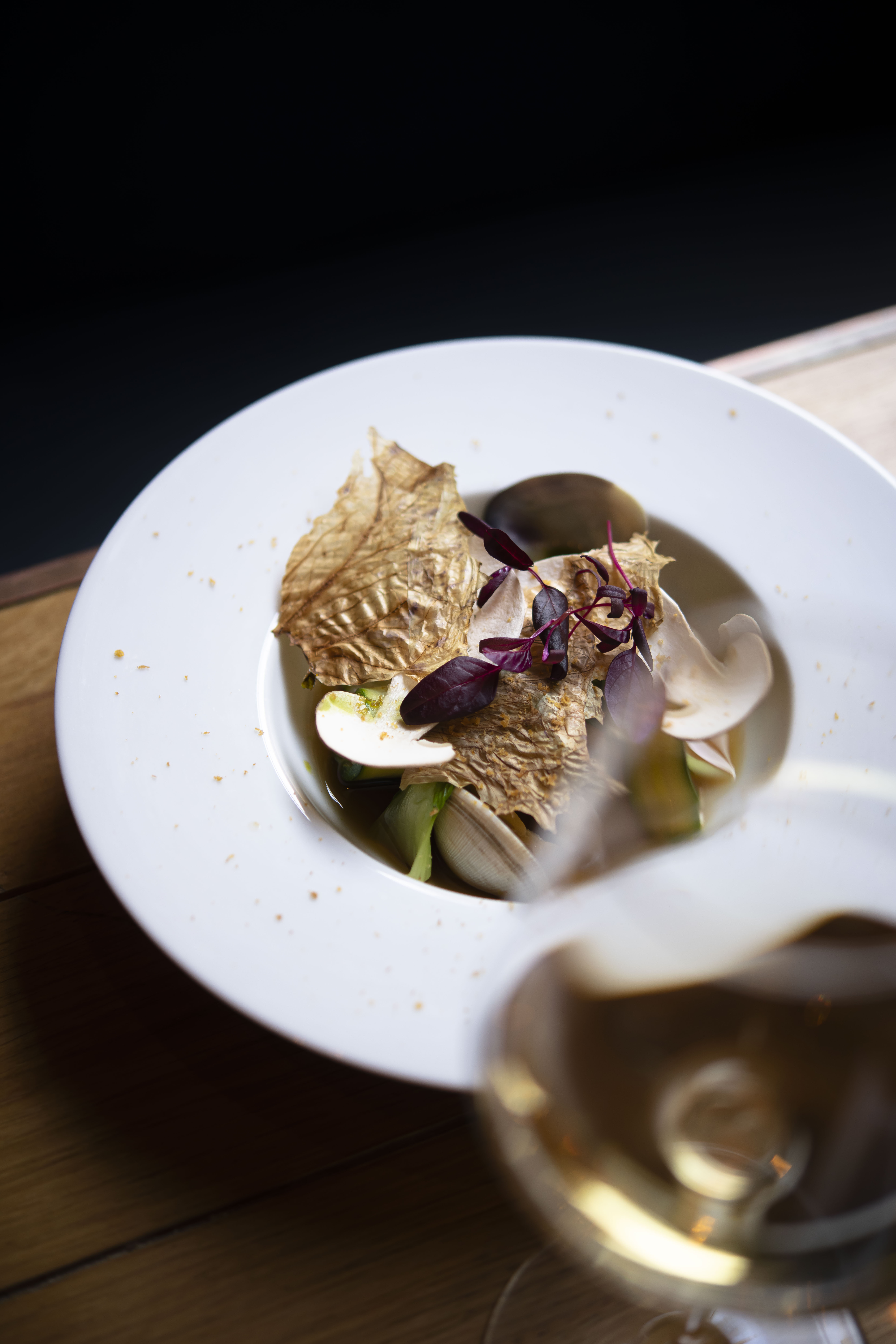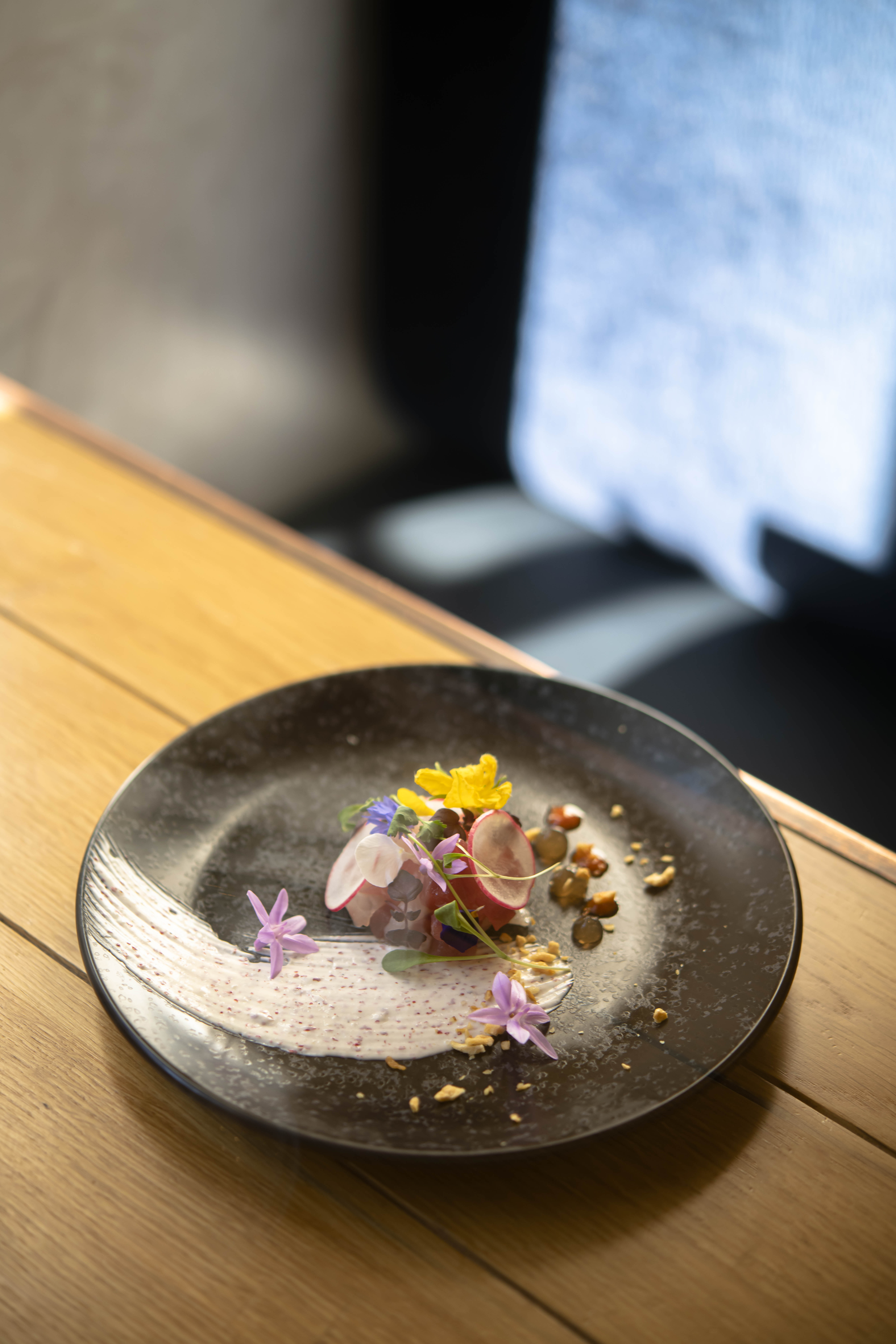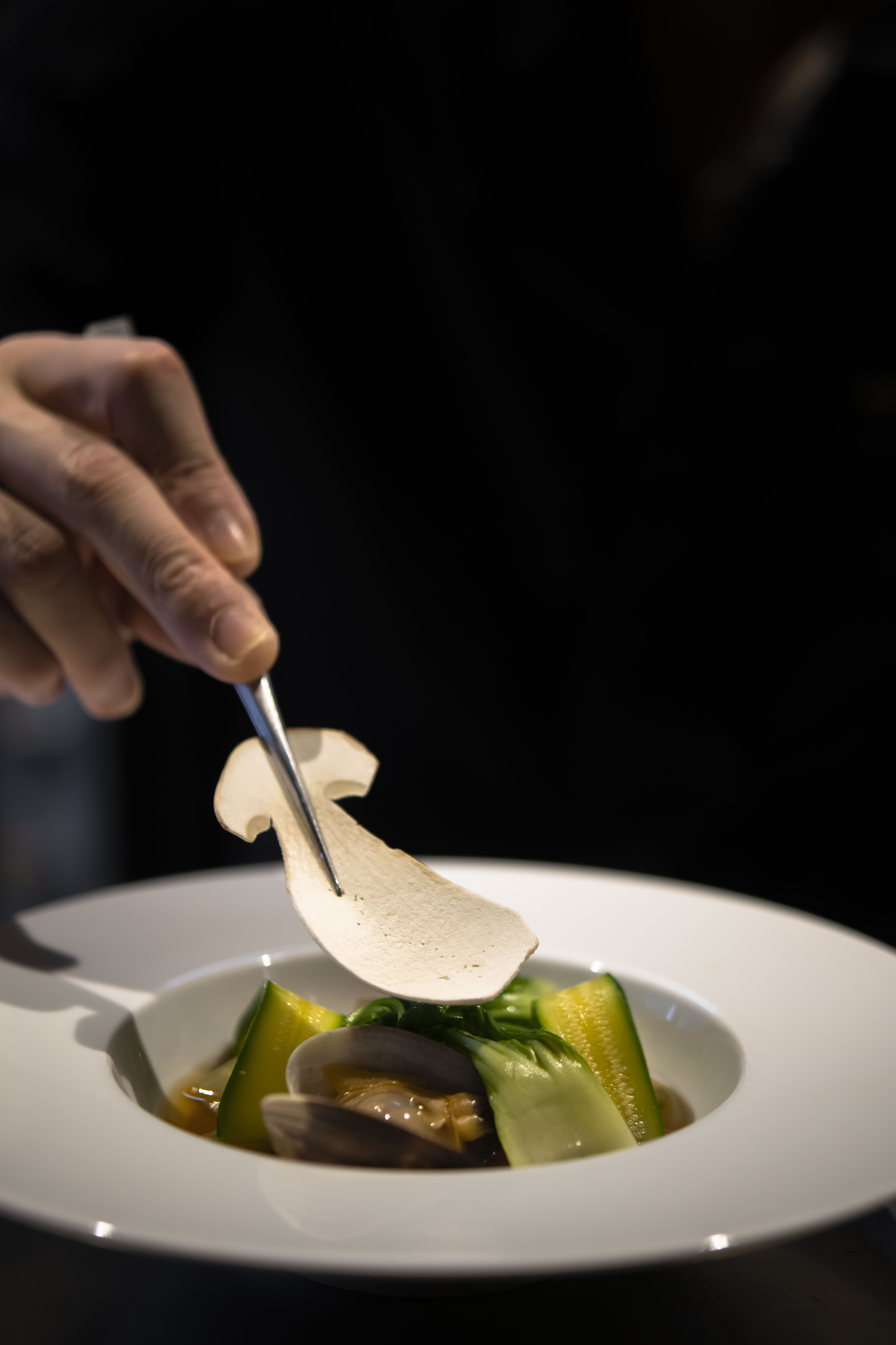 In the evening, Ryo Miyazaki offers an omakase menu, which translates as ‘I leave it to you.’ Diners discover Franco-Japanese cuisine through seven dishes: an amuse bouche, three starters, two main courses, and a dessert, at the chef’s discretion.