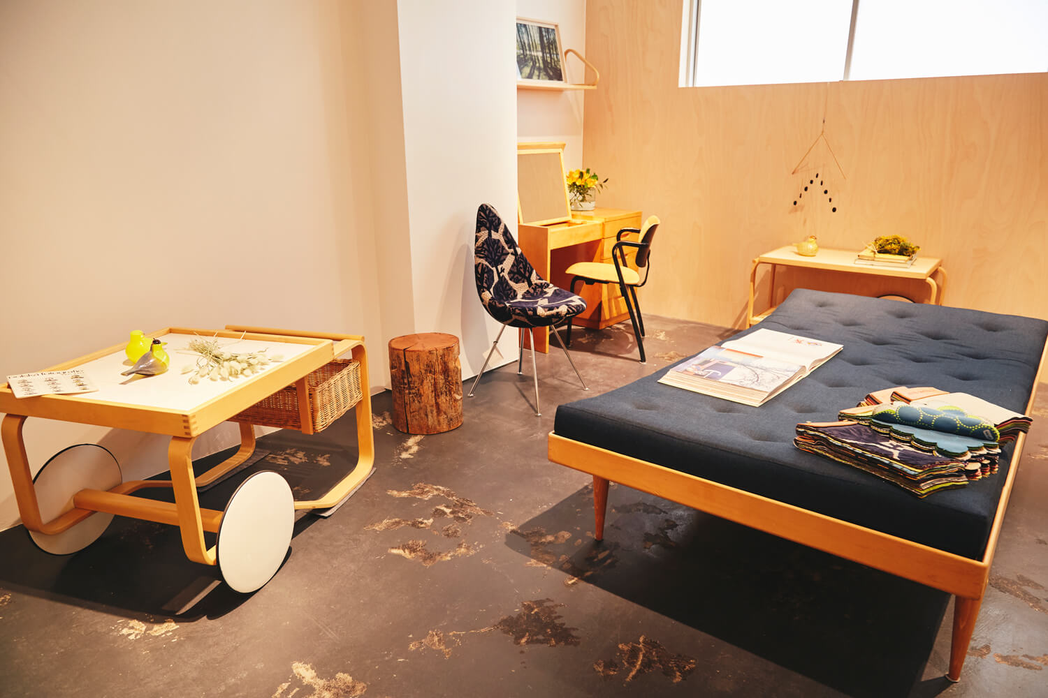 Just one street over from Evälä I is the building where Evälä II is located. Here Perhonen’s apparel, furniture, and sundries are available for purchase. Whereas Evälä I focuses on Japanese foods and tableware, Evälä II handles vintage Scandinavian furniture, including Artek items from Alvar Aalto’s famous furniture series. Furniture can also be ordered with Mina Perhornen textiles used as the upholstery. The store also accepts furniture for repair and customization, such as shortening the legs of chairs.