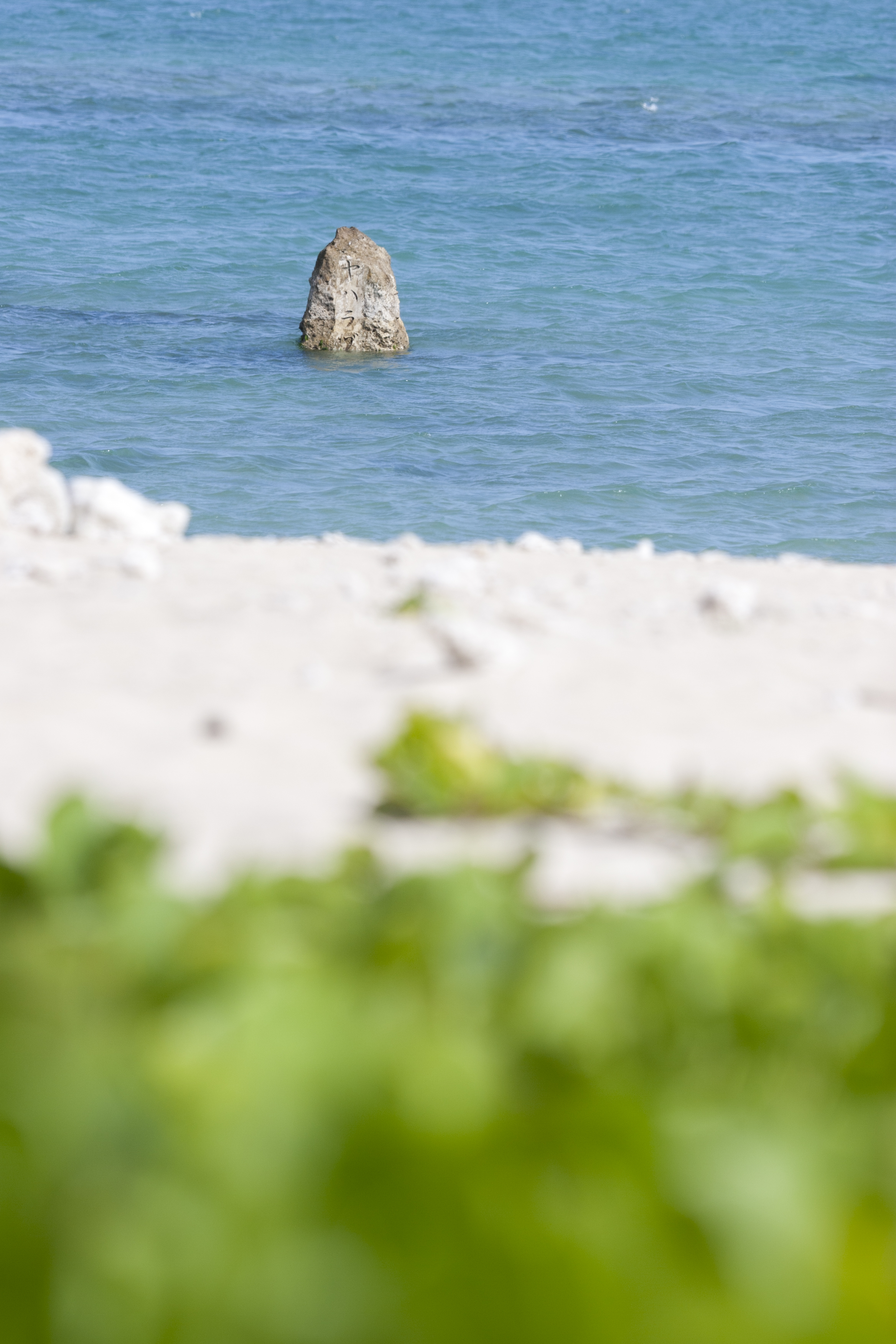 A stone monument standing in the sea next to Hyakuna Beach. It symbolizes the first landing on Okinawa by the god Amamikiyo.
